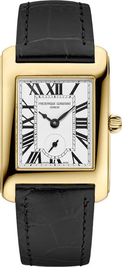 FREDERIQUE CONSTANT Classics Carrée Small Seconds Leather Strap Watch, 36mm x 25.2mm, Main, color, Gold-Tone
