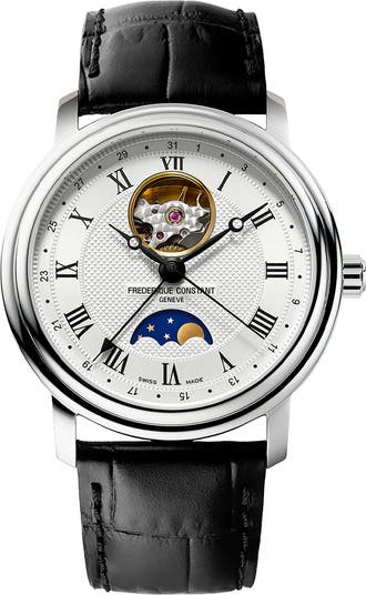Classics Heartbeat Moon Phase Leather Strap Watch, 40mm