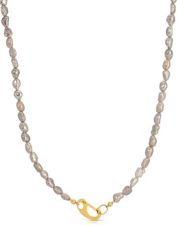 A sleek clasp centers this contemporary necklace strung with baroque cultured pearls.