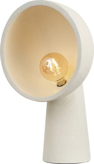 The contemporary silhouette of this lamp adds a bold sculptural accent to the living room, bedroom or office. Crafted from resin, this minimalist lamp design features a tapered column topped by a half-globe. A round, Edison-style LED bulb creates a warm glow that's reflected by the solid shade.
