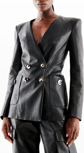Slip into our Claude Recycled Leather Blazer and slip into your best self. With powerful and chic shoulders, oversized silver buttons and large pockets – get ready for a major confidence boost. Pick up our exclusive Fiji Blue color or go classic with black. Pair with our Port Elizabeth Upcycled Leather Skirt for a full look. This piece runs relaxed. Please order your normal size. If you are in-between sizes, we suggest sizing down for a more fitted look, or sizing up for added comfort. AS by DF Signature Recycled Leather – our Recycled Leather Collection uses leather scraps (which would otherwise be waste) and modern technology to create supple, luscious leather for our beautifully crafted garments. Our commitment to sustainability: We are plastic free. AS by DF packaging is made from 100% recycled materials and is 100% biodegradable.