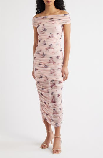 Allover ruching shapes a romantic midi that flatters your figure and shows off shoulders.