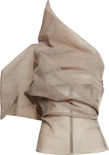 Crisp, sheer tulle is sculpted into dramatic folds on this one-shoulder top seen on the spring '26 runway. A strategically taped lining gives a bustier effect to this futuristic style imbued with signature Rick Owens edge.
