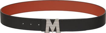 Reversible Lauretos monogram jacquard belt with fluted buckle and nappa leather trim
