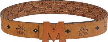 Visetos monogram canvas belt with cognac “M” belt and Lauretos monogram reverse side