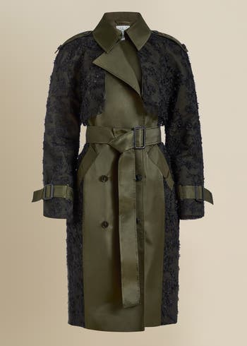 Claw Lace-Trimmed Elegant Cinched Trench Coat
