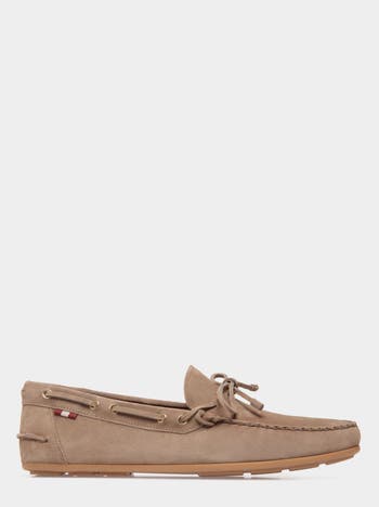 These driver shoes are made from soft suede. They are detailed with laces and woven ties.