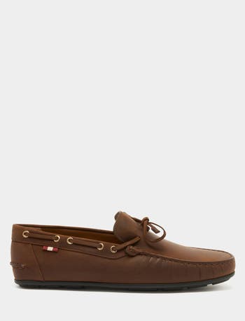 This round-toe Clay driver is built with moccasin construction to ensure lightness and comfort. The brown nubuck upper is united with a cushioned insole and a flexible rubber outsole.