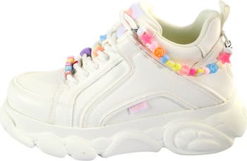 Often copied but never matched! Our iconic CLD in premium peta approved plant-based upper materials. featuring a removable insock and highly comfortable padding it became an absolute must have in every girls wardrobe. For ss23, it's all about the y2k ! our clean white bestseller comes embellished with bright candy charms for a cute and jolly styling.