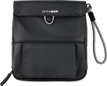 Additional features: Mat easily folds to keep clean and dirty sides separate.Textile wrist strap allows bag to be carried like a clutch or hung from your stroller handle.