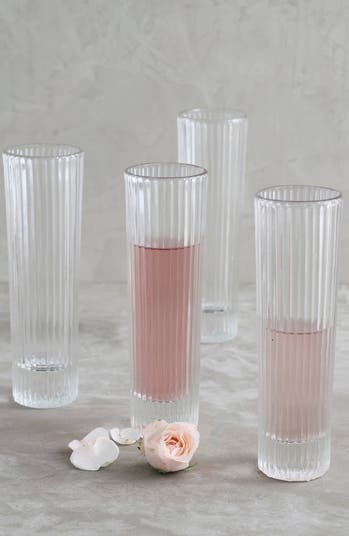 Bubbly never looked so good as it does in this columnar flute. Pressed glass features vertical ribs for visual interest and a secure grip. A hefty base ensures your glass remains upright and ready for a refill.