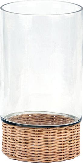 CG Hunter Clear Glass and Rattan Candleholder, Main, color, Glass