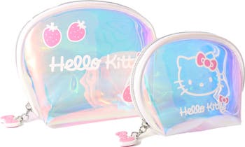 Hello Kitty Clear Iridescent Large and Small Dome Cosmetic Travel Bag Set, Alternate, color, Multicolor