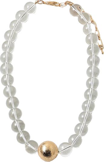 The clear lucite beads on this chunky necklace make the coolest statement! Their shine is accented by a single gold-colored bead for sparkle and elegance. Wear it for everyday to elevate your favorite t-shirt or sweater. We love it as a layering piece with one of our chain necklaces too!