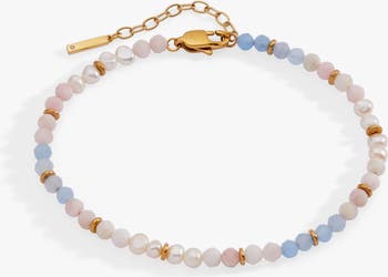 Bring a soft, ethereal sparkle to your look with this delicate beaded anklet. Featuring clear quartz beads that vary naturally in translucency and inclusions, this piece captures a light, airy feeling that's effortlessly chic. Tiny metallic spacers add a subtle glint, while the adjustable 1.5" extender ensures a comfortable fit. Available in your choice of shiny gold or shiny silver stainless steel, this design is a versatile, timeless addition to your jewelry collection.