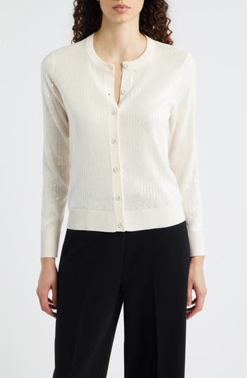 Anne Klein Clear Sequin Cardigan, Main, color, White Dove