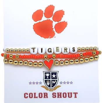 Color Shout Clemson Love My College Bracelet Stack, Main, color, Yellow Gold