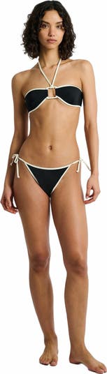 - Made from stretch tricot fabric, our Cleo brief is a string-tie swim bottom, traced in contrast binding and cut for cheeky back coverage.