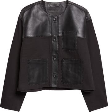 This boxy cotton canvas jacket is accented with supple lambskin-leather panels for a touch of textural contrast. Designed with a relaxed, cropped fit and dropped shoulders, it features a buttoned front and roomy patch pockets.