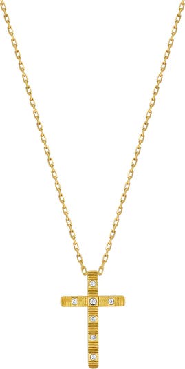 Polished links handcrafted from warm 18-karat gold define this necklace that suspends a diamond-adorned cross-shaped pendant to show a display of faith.