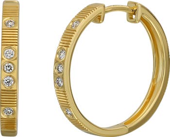 Stations of shimmering diamonds adorn etched hoop earrings handcrafted from 18-karat gold, bringing endless shine to any look.