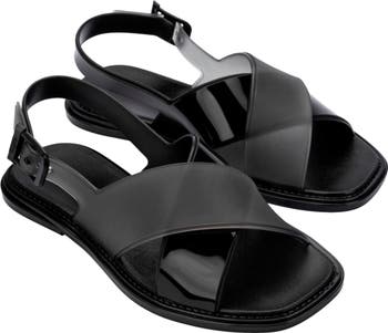 Wide, crisscrossing straps add stylish dimension to a cushioned slingback sandal designed with a water-resistant finish and infused with the brand's signature fruit scent.