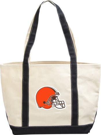 Pack all the essential items you need for the day in this Cleveland Browns tote bag. Made from durable canvas fabric, its contrasting trim and straps make the Cleveland Browns logo more noticeable. There's plenty of room in the open compartment to store small stuff, and long handles provide a comfortable carrying position.