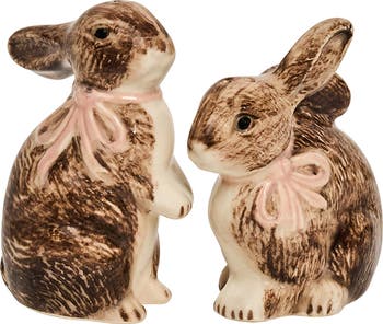 Masterfully sculpted and painted by hand, this pair of salt-and-pepper shakers shaped like charming bunnies adds a dash of spice to your tabletop spread.
