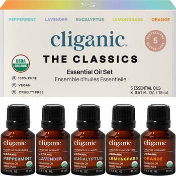 We offer only 100% Pure, Natural, Organic, Non-GMO Essential Oils. That means the oils are uncut (no carrier oils are added) and they are free of chemicals, no synthetics, etc. You're getting premium, high quality, affordable essential oils. Each oil in our 5-pack set are poured into glass amber bottles, which protect the oils from being de-sensitized, which weakens their scent and their properties. Each bottle comes with a German Dropper Cap (orifice reducer) that gives you better control - one drop at a time! Our 5-pack is an affordable gift for even the most expensive tastes. Perfect for gifting on holidays, birthdays, and special occasions. You could even include a few of our blends and recipes for a thoughtful touch. Included in this set: Peppermint OilLavender OilEucalyptus OilLemongrass OilOrange Oil