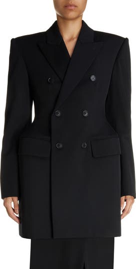 Demna revisits the iconic hourglass shape with this wool-gabardine blazer channeling the exaggerated tailoring of master courtier Cristóbal Balenciaga.