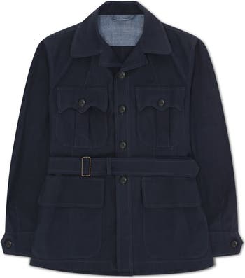 Inspired by the '30s US military, the Clint Military Safari Jacket is timeless and adventurous. Crafted in Italy from durable 100% cotton drill by Manteco , it features a comfortable fit with a waist belt. Large chest pockets , adjustable military cuffs , and a rear vent enhance its functionality. A versatile piece from Fortela , designed for a refined and distinctive style.