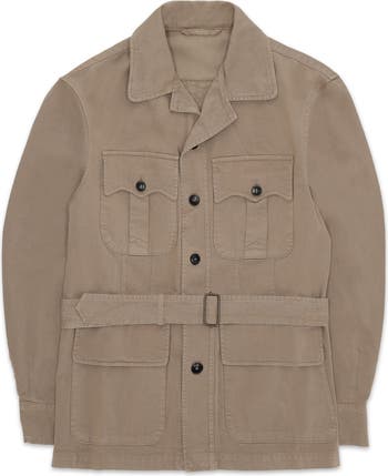 The Clint Military Safari Jacket, inspired by the '30s US Army, embodies Fortela's blend of adventure and elegance. Crafted in Italy from durable 100% cotton herringbone, it features an adjustable belt, shoulder straps and large flapped chest pockets. This jacket offers both functionality and timeless style. A versatile piece reflecting Fortela's commitment to enduring quality.