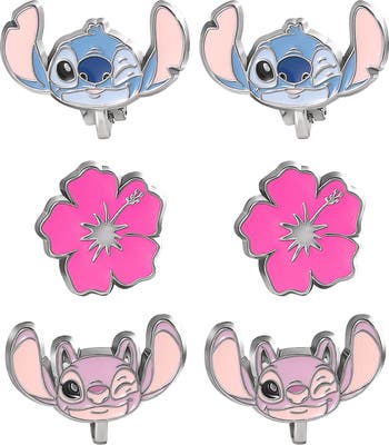 Accessorize in style with the Disney Stitch and Angel Clip-On Earring Set. This 3-piece set includes fun and colorful designs featuring Stitch, Angel, and a delightful flower motifs. Perfect for those who love Disney and want to express their unique style!