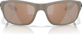 Lenses that are mirrored and polarized add suave style and functionality to full-coverage sunglasses in a rectangular silhouette. Improved Hydrolite™ grips on the temples keep your frames in place, while eyewire drains and channels help keep sweat and water out of your eyes.