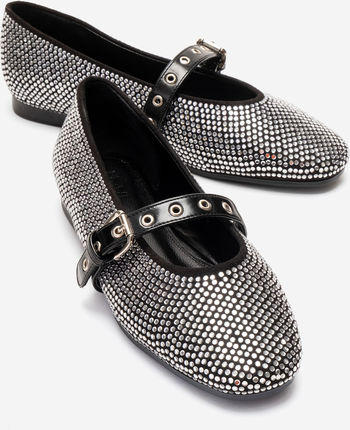 A glamorous ballet flat that reimagines the classic Mary Jane with sparkling embellishment