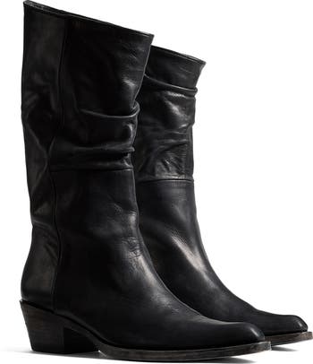A snipped toe and stacked Cuban heel frame this slouchy Western boot made from calfskin leather that's perfectly broken-in to suggest that this ain't your first rodeo.