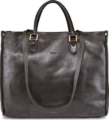 A genuine leather carryall tote with a hand washed finish and a detachable main compartment for travel ready function. Its clean exterior and organized interior make it a polished daily essential.