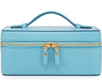 A polished travel beauty box designed for organized on the go storage. Crafted from smooth genuine leather with a structured interior for makeup essentials.
