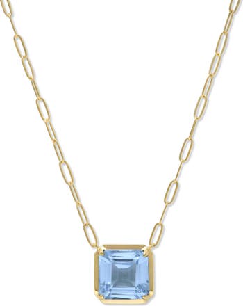 A scintillating aquamarine brings cool shine to the heart of this 14-karat-gold necklace that stacks well with others.