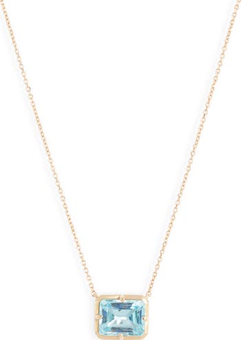 An emerald-cut topaz in a dreamy blue hue beams at the heart of this 14-karat gold pendant necklace that adds an elegant pop of color to your neckline.