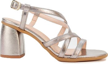 A sleek sandal crafted with slender crisscross straps and a modern block heel. An adjustable ankle strap ensures a secure, comfortable fit, perfect for day-to-night wear.