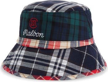 Embroidered CLOT and Malbon script logos mark the front of a classic bucket hat finished in an eye-catching plaid.