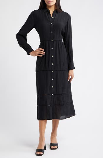 Ladder Stitch Long Sleeve Midi Shirtdress