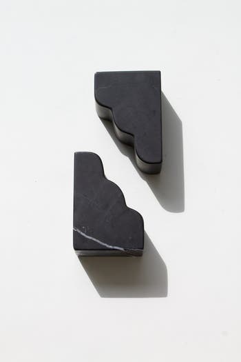 An exclusive collaboration with @maisonrogue. Our design inspiration began with a look at vintage bookends, objects that created nostalgia for libraries of times past. Everything we had seen was angular so we aimed to create something new. We wiggled our pen, in an attempt to undo the rigid lines, and fell in love with the resulting shape. Wrapped around a stack of books, these pieces appear as clouds. Individually each piece acts as a little sculpture. Using Nero or St. Laurent marble, these bookends are fabricated by hand. Each curve is ground down meticulously and finished in a rough honed texture. They are made sustainably utilizing marble offcuts. Sold individually.