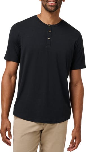 A curved hem and comfortable stretch make this cotton-forward henley a smart choice for day-to-day wear.