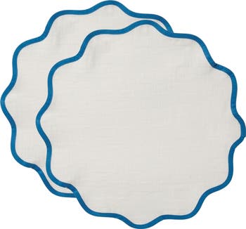 Add a little romance to your alfresco picnic table or white tablecloth with our set of two Cloud Placemats, made in Italy from our dreamy shot cotton and finished with bright contrast piping around the rim. Mix and match with our other brightly-trimmed sets for an understated foundation on which to build your minimalist or maximalist tablescape this season. Treat these babies with care: our bellissimo Italian-made cotton has natural irregularities, such as small knots in the yarn, but for us that doubles the charm.