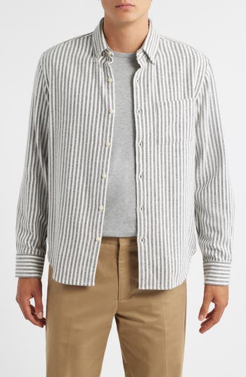 Brushed for softness and designed for comfort, this organic-cotton flannel shirt features crisp, classic pinstripes and a look that works across your entire laid-back wardrobe. Wear it buttoned and tucked in or layered and open depending on the weather, the day or your mood.