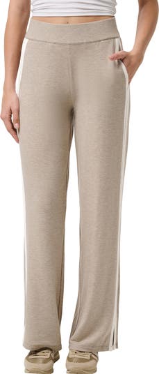 Comfy pull-on pants constructed from supersoft French terry with a touch of stretch offer laid-back appeal with a wide-leg silhouette with sporty side stripes.