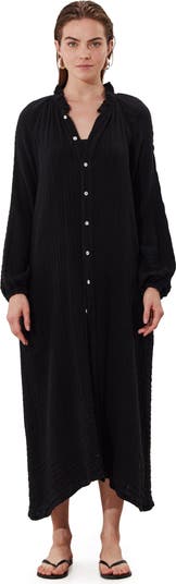 Drift into coastal charm with the Cloudshore Ruffle Collar Dress Cover-Up. Designed with a delicate ruffle collar, front button closure, long sleeves with elastic cuffs, and side pockets, this one-size-fits-most cover-up blends boho ease with breezy elegance, perfect for sun-soaked escapes.