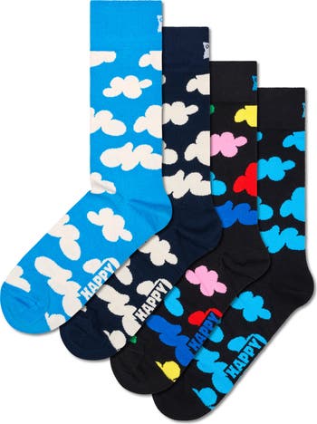 A comfy cotton blend keeps the blues at bay in these cloudy crew socks coming an a giftable box with four assorted pairs inside.